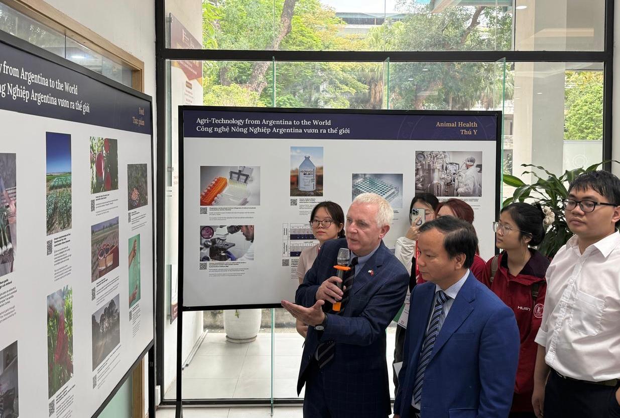 Inauguramos la muestra fotográfica del INTA “Tecnología Agropecuaria Argentina al Mundo” en la HUST -Hanoi University of Science and Technology” y participamos en la entrega de certificados a los estudiantes vietnamitas que participaron del Seminario on-line de capacitación “Experiencias de Argentina y Vietnam en Calidad de Leche y Tecnología en Quesos” impartido por el Instituto Nacional de Tecnología Agropecuaria- INTA, entre el