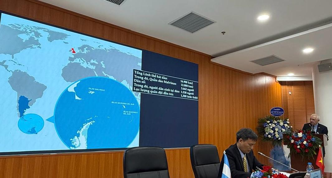 La Academia de Ciencias Sociales de Vietnam, en colaboración con esta Embajada, organizó un seminario sobre la política exterior argentina y las relaciones bilaterales, presentándose un capítulo especial sobre la Cuestión Malvinas.